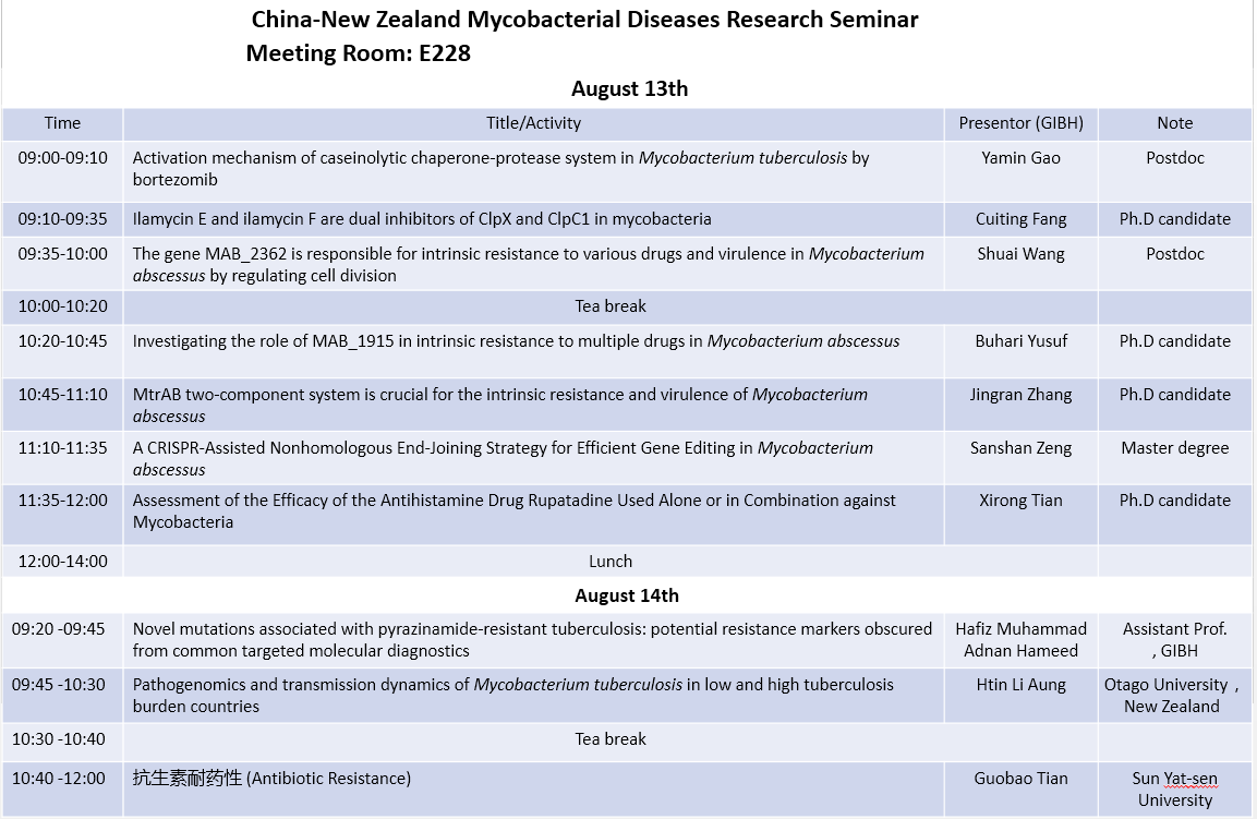 2024年8月13~14日:China-New Zealand Mycobacterial Diseases Research Seminar