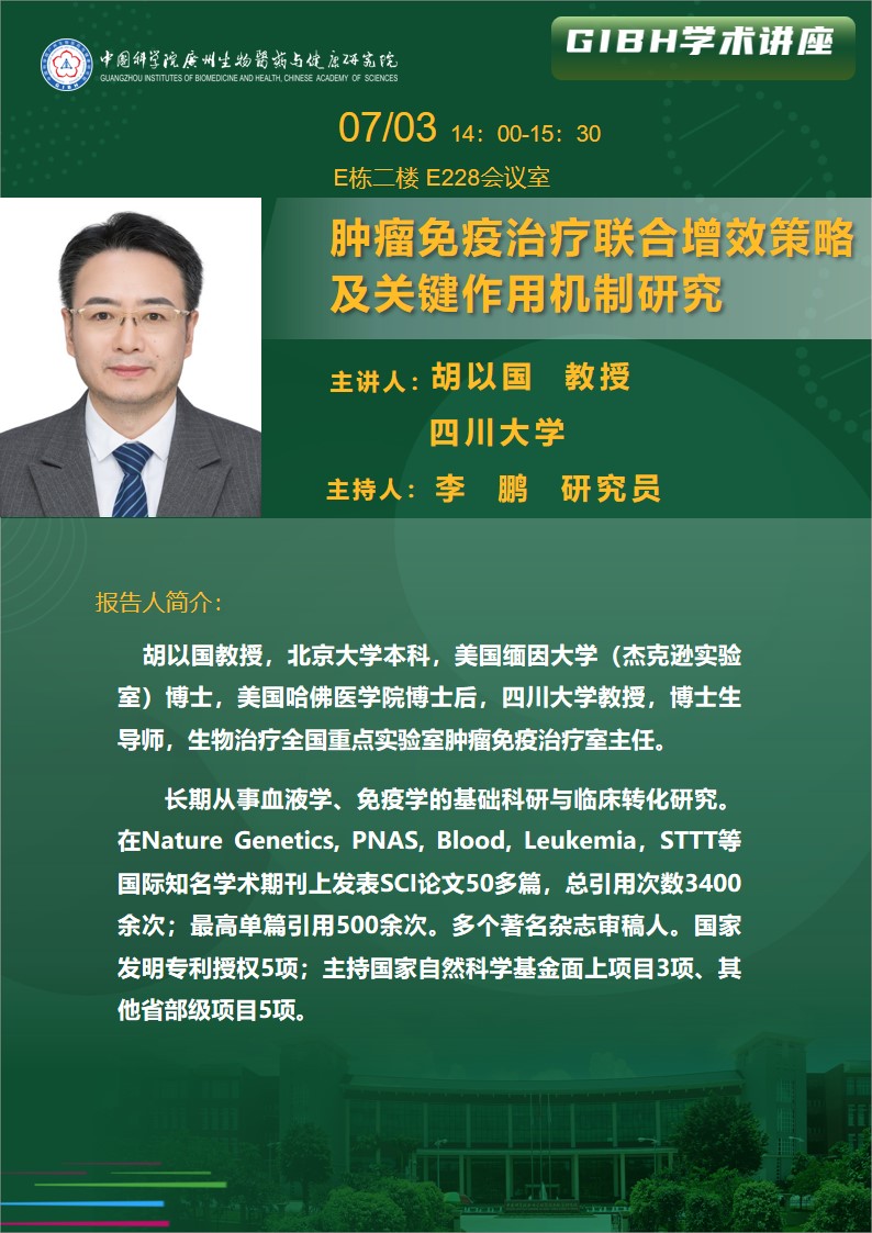 2025年7月3日學術講座: 腫瘤免疫治療聯(lián)合增效策略及關鍵作用機制研究