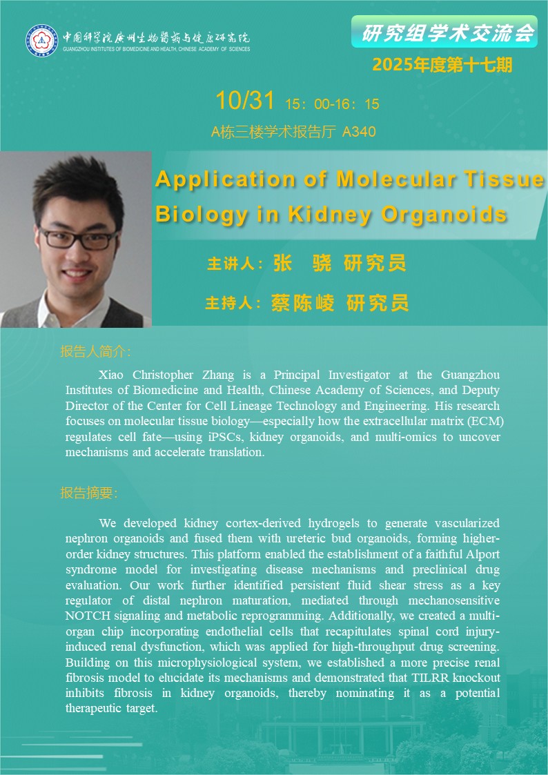 2025年10月31日研究組學(xué)術(shù)交流會(huì)(2025年度第十七期):Application of Molecular Tissue Biology in Kidney Organoids