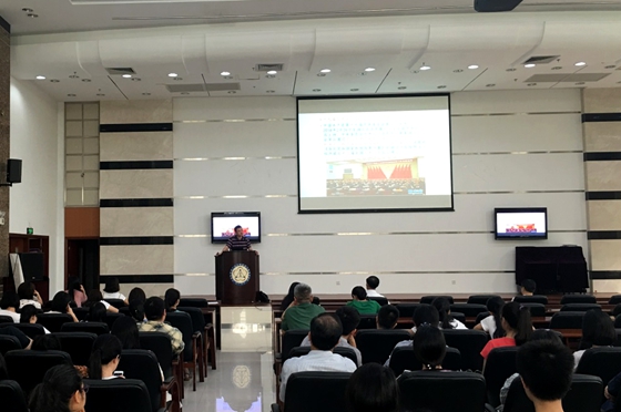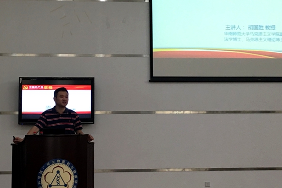 華南師范大學(xué)胡國(guó)勝教授就新修訂的黨章、憲法學(xué)習(xí)的時(shí)代背景、學(xué)習(xí)意義并結(jié)合時(shí)政熱點(diǎn)進(jìn)行了輔導(dǎo)與講解。