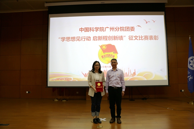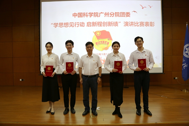 在中國科學院廣州分院團委舉辦的紀念五四運動104周年表彰大會暨“學思想見行動 啟新程創(chuàng)新績”演講比賽中,廣州健康院團委書記黃博純同志撰寫的題為《筑夢灣區(qū)——開辟華南生物醫(yī)藥研究新天地》的征文在眾多優(yōu)秀作品中脫穎而出,榮獲一等獎。在演講比賽環(huán)節(jié),研究院周廣琦、潘路遙、仇童、孫珍珠四名選手演講的內容正是黃博純的獲獎征文,他們憑借巧妙的構思、青春的形象和精彩的演繹獲得演講比賽一等獎。