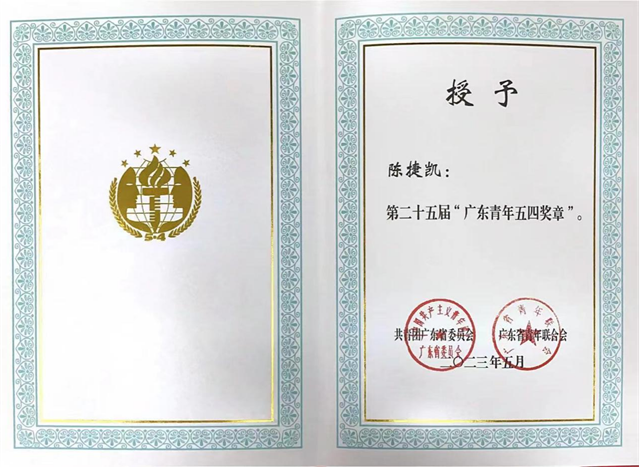 日前,中國科學(xué)院廣州生物醫(yī)藥與健康研究院陳捷凱研究員獲得“第二十五屆廣東省五四青年獎?wù)隆保▊€(gè)人)表彰。