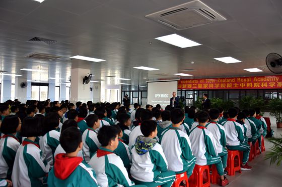 活動(dòng)上,Rod Dunbar教授、廣州生物院李尹雄研究員、吳東海研究員等科學(xué)家分別作了《新西蘭教育與文化》、《我的科學(xué)故事》等主題講座。Rod告訴師生們,新西蘭的教育方式,更注重強(qiáng)調(diào)怎么讓小孩去“玩”,培養(yǎng)小孩的探索、創(chuàng)造力及創(chuàng)新能力。Rod還講到新西蘭的人文、土著毛利族,國鳥Kiwi(幾維鳥)、生態(tài)保護(hù)等方面,談到興致時(shí),Rod歡快地唱起了歌。李尹雄研究員則通過自身做人做事的體會(huì)去引導(dǎo)學(xué)生如何樹立正確的人生觀和價(jià)值觀,并講述了自己在美國20年不改國籍的愛國故事。