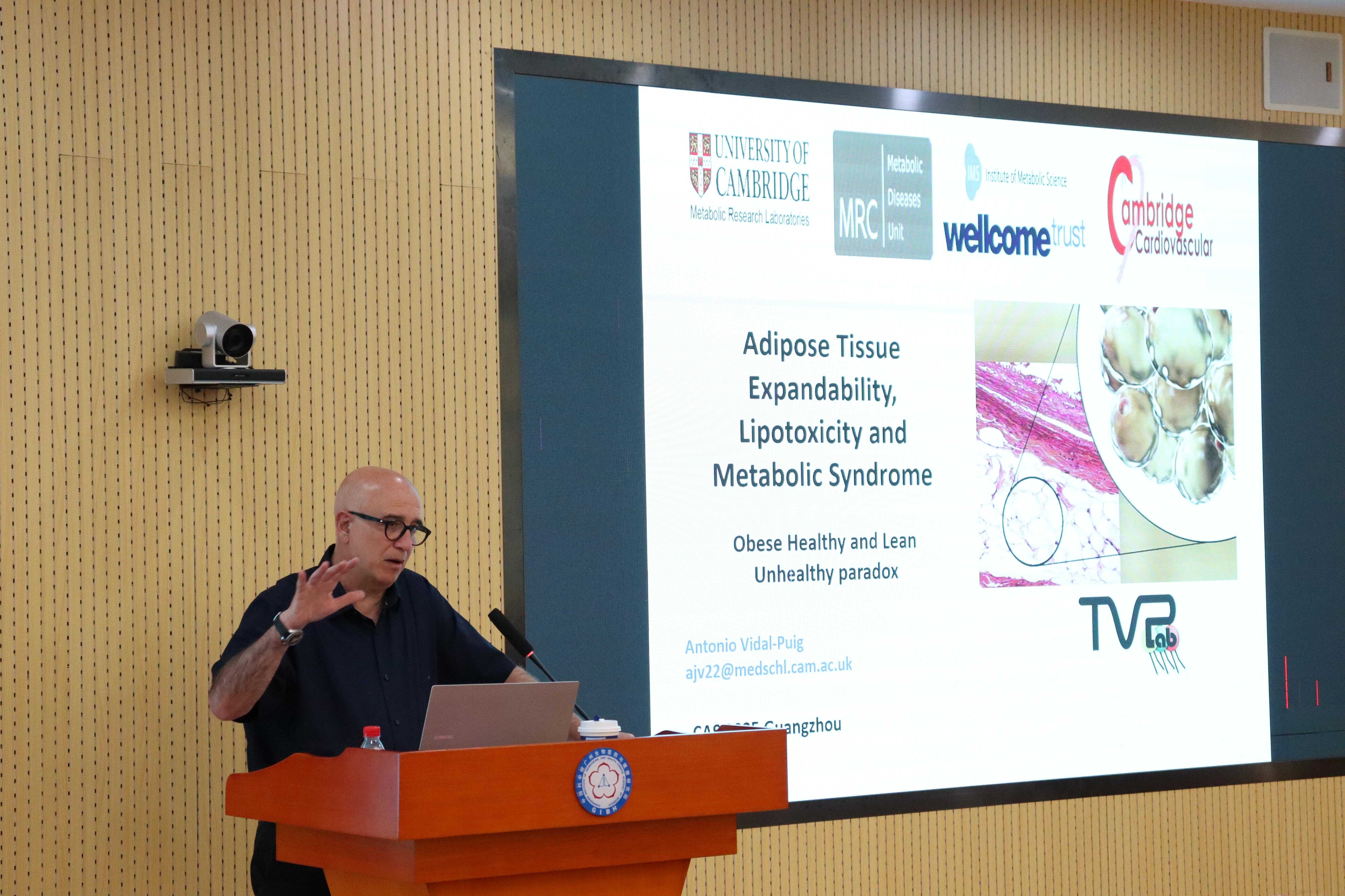 2025年8月14日,歐洲科學院(MAE)、英國醫(yī)學科學院(FMedSci)、英國皇家醫(yī)學院(FRCP)院士Antonio Vidal-Puig教授應廣州健康院邀請開展學術(shù)交流,并作題為“Adipose tissue expandability lipotoxicity and metabolic syndrome”的學術(shù)報告。本次活動由孫偉副研究員主持,院內(nèi)多名科研人員和學生共同參與。