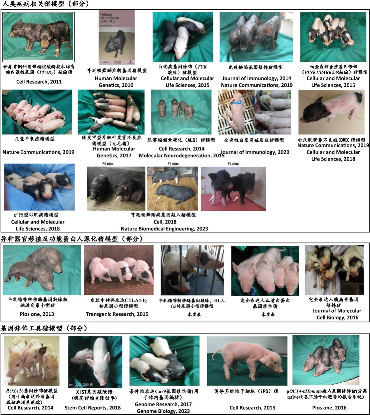 培育出70余種具有重要應(yīng)用價值的豬模型,建立了世界最大規(guī)模的基因編輯豬模型種群,其中基因敲入亨廷頓病豬模型亮相國家“十三五”科技創(chuàng)新成就展(Cell, 2018; Nature Biomedical Engineering, 2023; Nature Communications, 2019; Genome Biology, 2023; Genome Research, 2017; Cell Research, 2011, 2013, 2014等)