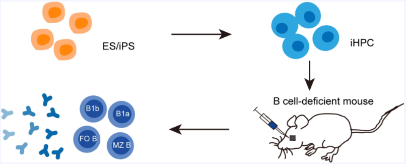首次揭示了一套可以高效誘導(dǎo)干細(xì)胞分化產(chǎn)生B免疫譜系的轉(zhuǎn)錄因子組合,證明在不依賴造血干細(xì)胞存在的情況下可以通過(guò)再生手段移植重建功能完整的體液免疫系統(tǒng),實(shí)現(xiàn)抗原特異性體液免疫應(yīng)答,并產(chǎn)生長(zhǎng)期免疫記憶。這為開發(fā)B細(xì)胞療法治療B細(xì)胞相關(guān)疾病提供了理論支持和及技術(shù)借鑒(2021,Cellular & Molecular Immunology)。