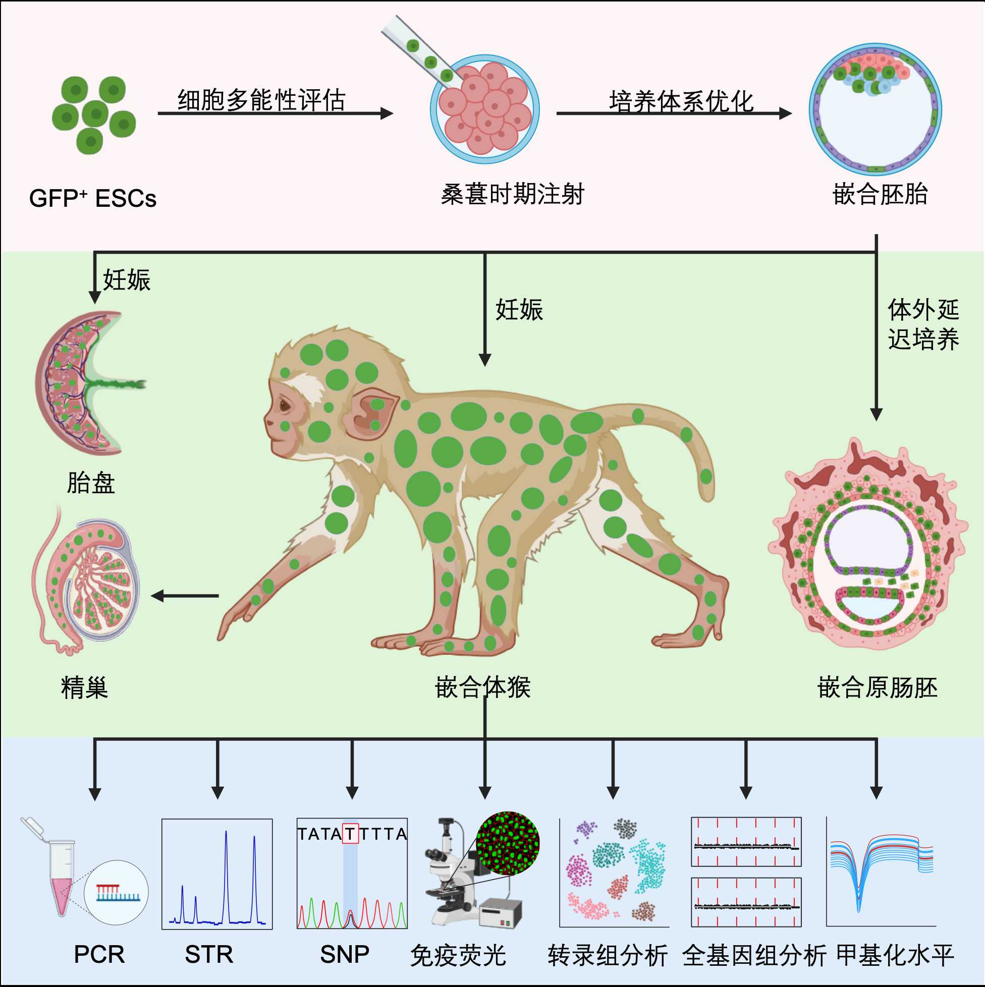 合作構(gòu)建的高比例胚胎干細胞嵌合體猴出生并存活