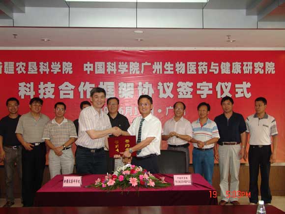 根據(jù)《關(guān)于進(jìn)一步促進(jìn)新疆經(jīng)濟(jì)社會(huì)發(fā)展的若干意見》(國發(fā)〔2007〕32號(hào))文件精神,結(jié)合建設(shè)創(chuàng)新型國家的戰(zhàn)略部署和中國科學(xué)院加強(qiáng)與國家創(chuàng)新體系各單元聯(lián)合與合作的實(shí)際需求,6月19日,我院與新疆農(nóng)墾科學(xué)院隆重舉行了科技合作框架協(xié)議簽字儀式。