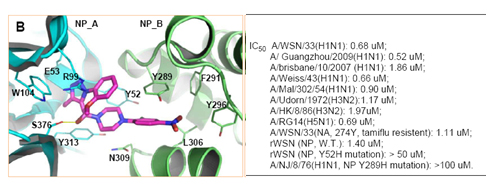 甲型流感是嚴(yán)重威脅人類健康的傳染性疾病。盡管目前在流感的防治方面,已有上市的疫苗和藥物,但是由于流感病毒的易突變并產(chǎn)生耐藥等特性,第一代抗病毒藥物金剛烷胺和第二代抗病毒藥物達(dá)菲已出現(xiàn)了嚴(yán)重的耐藥性和副作用。因此,開發(fā)出具有新作用機制安全有效的抗甲型流感藥物變得十分重要。