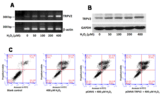 氧化應激是腫瘤一個重要的誘發(fā)因素和病理特征,為了維持在高水平ROS條件下生存,癌細胞已形成了一套更強的抗氧化防御機制。由于許多抗癌手段(包括放射療法和許多藥物)的一個重要機制是通過誘導高水平ROS而選擇性殺死癌細胞,這種氧化適應機制的形成也增強了細胞的耐藥性。因此,探索如何削弱這種氧化適應機制對提高抗腫瘤治療效果具有重要的意義。TRPV2是廣泛表達于體內多種組織和器官的一個非選擇性陽離子通道。諸多證據表明,TRPV2高表達于多種腫瘤組織中,不僅調控著腫瘤細胞的生長和遷移,而且還與許多腫瘤的分化程度密切相關,提示TRPV2可作為腫瘤惡化以及預后的一個重要標志物。然而,引起TRPV2在腫瘤組織異常表達的機制并不清楚,而且其在腫瘤組織的功能仍未完全闡明。