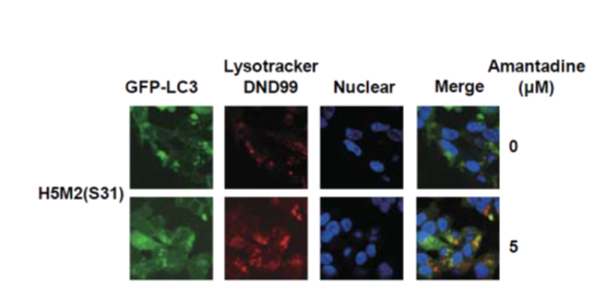 細(xì)胞自噬是真核細(xì)胞中高度保守的,通過降解細(xì)胞中的細(xì)胞器、長壽命蛋白來維持細(xì)胞穩(wěn)態(tài)的重要生理過程。在病毒、細(xì)菌等微生物感染時,細(xì)胞自噬可通過降解病毒成分等抵御微生物感染,是機體對感染的重要防御機制。在流感病毒感染宿主細(xì)胞時,細(xì)胞自噬參與流感病毒誘導(dǎo)的炎癥反應(yīng),特別是參與高致病性禽流感病毒誘導(dǎo)的過度炎癥反應(yīng)。研究人員通過深入研究發(fā)現(xiàn),M2蛋白通過其離子通道活性阻斷細(xì)胞自噬體與溶酶體的融合而抑制細(xì)胞自噬的降解,同時證實M2蛋白阻斷自噬不依賴Beclin1/PI3 Kinase復(fù)合物信號途徑。此項研究對進一步闡明流感病毒對細(xì)胞自噬的作用機制及進一步探索細(xì)胞自噬在流感病毒感染過程中介導(dǎo)炎癥反應(yīng)及肺損傷的機制提供了重要線索,并為研究通過干預(yù)減輕高致病性禽流感病毒感染引起的過度炎癥反應(yīng)及肺損傷的策略提供重要依據(jù)。
