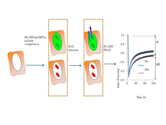 活細(xì)胞內(nèi)實(shí)時精確定量常染色質(zhì)和異染色質(zhì)的松散性的成像方法