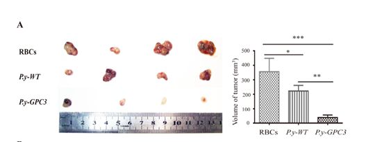 表達(dá)GPC3蛋白的瘧原蟲感染荷瘤小鼠肝臟腫瘤受到抑制