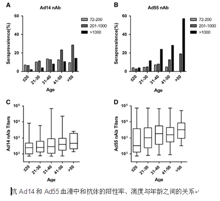 腺病毒是常見的呼吸道病原體,在健康成人中常引起自限性疾病,如普通感冒、流行性角膜結(jié)膜炎、腸胃炎等,而在嬰幼兒、免疫力低下人群以及聚居人群中可導(dǎo)致社區(qū)獲得性肺炎。近年來,新型腺病毒14型(Ad14)和55型(Ad55)在美國、歐洲以及我國時(shí)有爆發(fā),具有較強(qiáng)的致病力,可引起重癥肺炎甚至死亡。目前Ad14和Ad55已受到全球公共衛(wèi)生系統(tǒng)的廣泛關(guān)注。但是,Ad14和Ad55在我國健康人群中的既往流行狀況以及群體免疫水平尚不清楚。