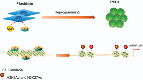 研究團(tuán)隊(duì)前期發(fā)表在EMBO Reports上的研究篩選到異染色質(zhì)松散因子Gadd45a作為新型因子,開發(fā)出新的更高效的重編程方法。研究組運(yùn)用轉(zhuǎn)錄組學(xué)系統(tǒng)鑒定Gadd45a的miRNA靶點(diǎn),發(fā)現(xiàn)在體細(xì)胞重編程過(guò)程中Gadd45a特異激活miR-290簇的表達(dá)。
