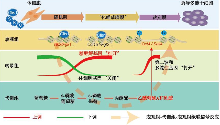 誘導(dǎo)多能干細(xì)胞(iPSC)技術(shù)為研究人類疾病病理和再生醫(yī)學(xué)治療提供了廣闊前景,同時(shí)是研究細(xì)胞命運(yùn)轉(zhuǎn)變的良好模型。iPSC重編程機(jī)理在不同層次被廣泛研究,包括表觀層次、轉(zhuǎn)錄層次、代謝層次以及細(xì)胞層次方面。然而,重編程中多層次是否及怎樣“跨界”調(diào)控干細(xì)胞命運(yùn),是一個(gè)一直沒有回答的基本科學(xué)問題。