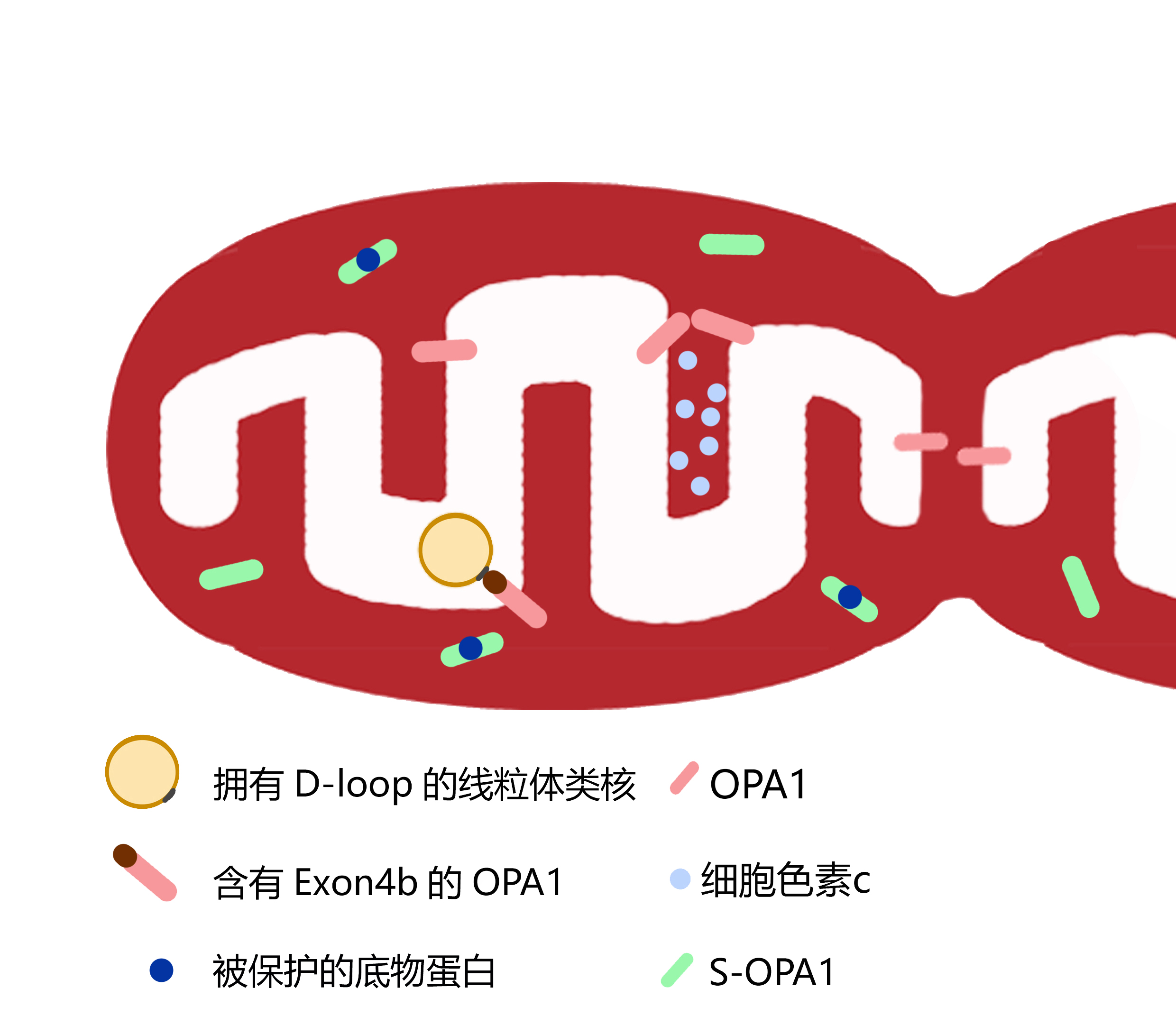 OPA1(Optic Atrophy 1,視神經萎縮蛋白1)在多種生理病理中發(fā)揮重要作用,劉興國博士對OPA1在線粒體抗脅迫的作用進行了系統(tǒng)研究,這一持續(xù)的工作使人們對于OPA1在線粒體損傷中的“三頭六臂”的多重作用有了一個嶄新并全面的認識:首先,當線粒體在脅迫條件下時,其膜間隙的可溶性短鏈蛋白S-OPA1作為分子伴侶,發(fā)揮“仁義”的作用,維持線粒體蛋白穩(wěn)態(tài);其次,當線粒體通過社交得到外援而功能恢復,OPA1不含外顯子4b的剪接體發(fā)揮了“情商”的決定作用,可以與其他功能正常的線粒體進行“kiss-and-run”或完全融合得到恢復(Liu X et al., 2019, EMBO J);再次,當線粒體自我功能恢復,OPA1含外顯子4b的剪接體發(fā)揮了“良知”的啟動作用,特異結合線粒體DNA的轉錄的調控區(qū)而恢復功能(Liu X*, 2020, Front Cell Dev Biol);最后,當線粒體損傷嚴重將導致細胞死亡,OPA1則驟然“心碎” 釋放內嵴的細胞色素c引發(fā)凋亡(Liu X*, 2015, Heptology)。
