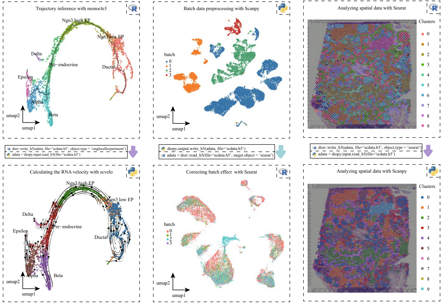 scDIOR很方便地實(shí)現(xiàn)數(shù)據(jù)在平臺(tái)間的轉(zhuǎn)換,將不同工具的優(yōu)勢(shì)連接起來