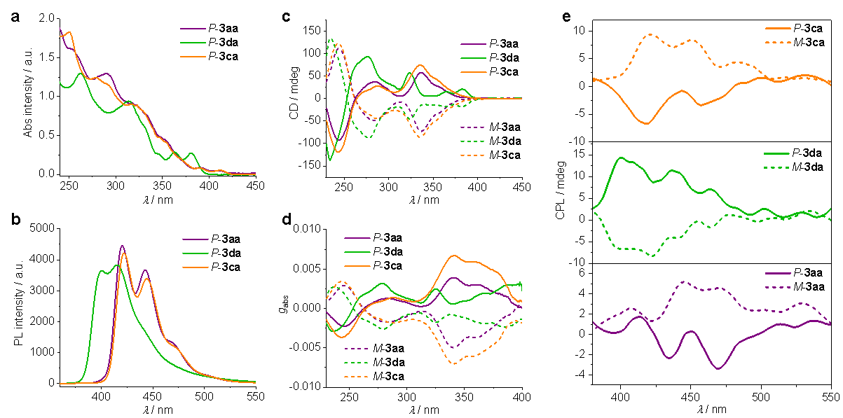 與此同時(shí),該研究還完成了對(duì)部分吡啶并螺烯化合物的光學(xué)活性表征。結(jié)果表明此類手性吡啶并螺烯化合物具有良好的CPL活性。