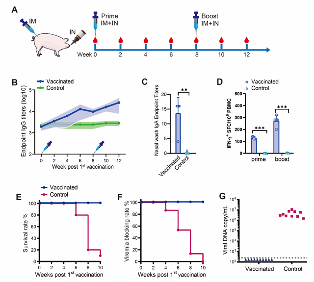 近日,中國科學(xué)院廣州生物醫(yī)藥與健康研究院、廣州實(shí)驗(yàn)室、廣州恩寶生物醫(yī)藥科技有限公司等單位合作,在腺病毒載體非洲豬瘟疫苗研制及免疫策略研究方面取得新進(jìn)展,相關(guān)研究成果以“A new vaccination regimen using adenovirus-vectored vaccine confers effective protection against African swine fever virus in swine”為題在線發(fā)表于Emerging Microbes & Infections。