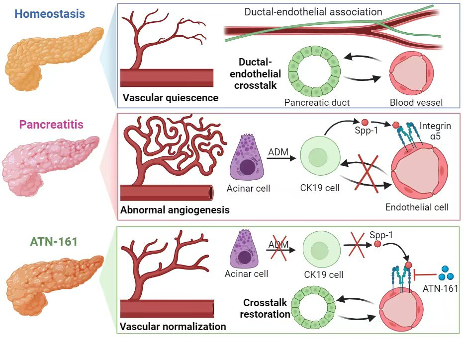 胰腺炎和ATN-161病理與藥物譜系分析總結的工作模型