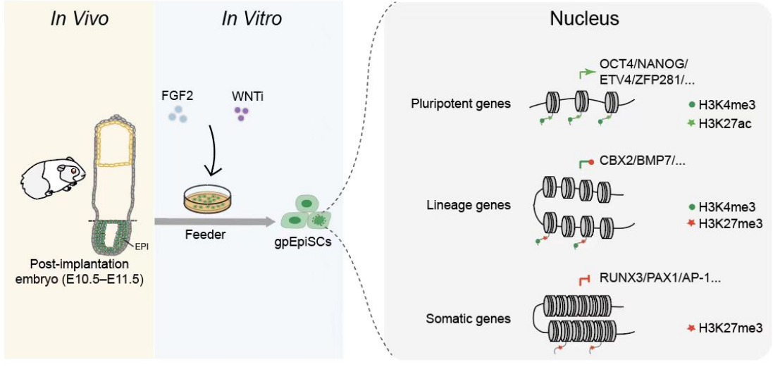 2025年1月9日,中國科學(xué)院廣州生物醫(yī)藥與健康研究院劉晶研究組與廣東省人民醫(yī)院朱平教授合作在Stem Cell Reports上在線發(fā)表題為“Capture Primed Pluripotency in Guinea Pig”的研究論文。本研究建立并表征了豚鼠始發(fā)態(tài)胚胎干細胞系(gpEpiSCs),為生物醫(yī)學(xué)科學(xué)提供了新的研究資源。