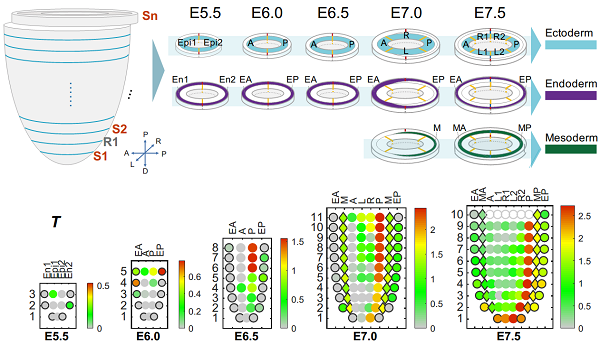 通過經(jīng)典的細胞標記移植和譜系追蹤等方法,發(fā)育生物學家在上世紀八九十年代已經(jīng)初步建立了小鼠胚胎的細胞命運圖譜。這些研究發(fā)現(xiàn),細胞的空間位置對于細胞命運具有重要的影響。例如,各胚層的前體細胞在原腸胚形成之前的上胚層中具有特定的空間區(qū)域,而當原腸運動完成后,前端外胚層細胞將按照頭尾(Cranio-caudal)的次序,發(fā)育為大腦及脊髓等具有嚴謹前后次序的中樞神經(jīng)系統(tǒng)。然而小鼠早期胚胎發(fā)育、特別是原腸運動時期的胚層譜系建立及細胞命運決定的分子機制尚不清晰,亟需從時間和空間尺度,在全基因組層面闡釋其調(diào)控關(guān)系。