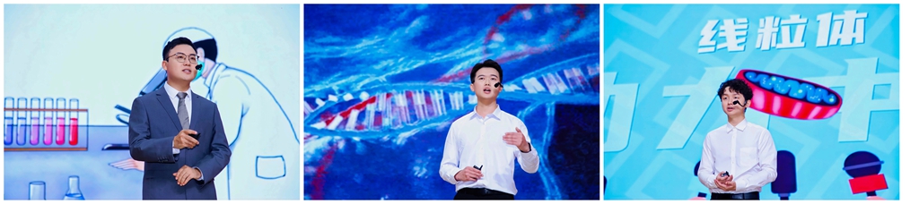 其中,帥文通以《點(diǎn)燃生命的曙光——異種器官移植》為題,從人們對“豬”的認(rèn)識切入,介紹為什么選擇豬作為研究對象、如何實(shí)現(xiàn)異種器官移植以及我國開展的異種器官移植案例。謝智峰《藥從何而來》從藥物的生產(chǎn)過程講起,揭示藥品研究“死亡之谷”的現(xiàn)實(shí),從藥物研發(fā)角度介紹細(xì)胞譜系設(shè)施,引發(fā)了觀眾的強(qiáng)烈共鳴。杜賜杰圍繞“細(xì)胞的能量工廠:線粒體的奧秘和重要性”,帶領(lǐng)觀眾走近線粒體的微觀世界,并科普了“線粒體遇見”科研成果。選手們在講解過程中,不僅運(yùn)用了清晰的邏輯、流暢的表達(dá),還借助豐富的圖片、視頻等輔助手段,使講解更加直觀形象。