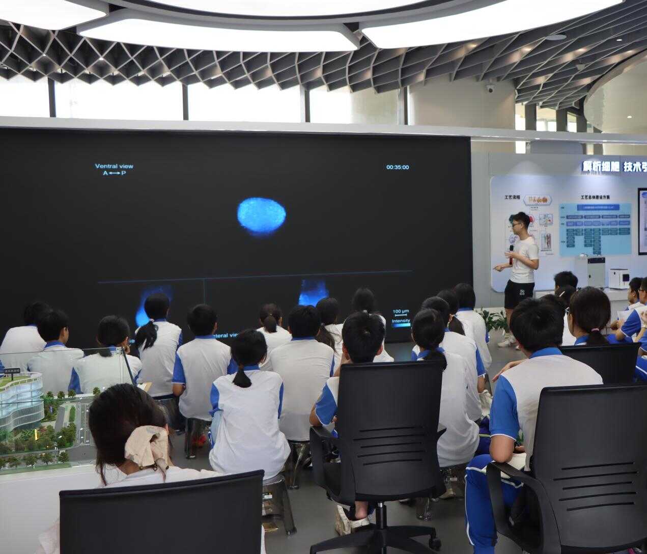 5月24日,由中國科學(xué)院廣州生物醫(yī)藥與健康研究院牽頭建設(shè)的國家“十四五”重大科技基礎(chǔ)設(shè)施——人類細(xì)胞譜系大科學(xué)研究設(shè)施(簡稱“細(xì)胞譜系設(shè)施”)在廣州國際生物島舉辦了設(shè)施開放日活動(dòng),活動(dòng)以“生命數(shù)字化大國重器‘大揭秘’”為主題,為來自廣州科學(xué)城中學(xué)的40余位學(xué)生和老師詳細(xì)介紹了這一剛剛正式啟動(dòng)建設(shè)的大科學(xué)設(shè)施。活動(dòng)集合參觀、前沿科學(xué)儀器演示、科普講座和問答交流等多種形式。一方面具體且生動(dòng)展現(xiàn)了細(xì)胞譜系設(shè)施建設(shè)內(nèi)容、建設(shè)進(jìn)展以及預(yù)期目標(biāo),一方面深入淺出地講解了生命科學(xué)的前沿和核心細(xì)胞譜系研究的基本知識以及其在推動(dòng)疾病精準(zhǔn)治療、縮短藥物研發(fā)周期等方面的重要作用,拉近了公眾與大科學(xué)設(shè)施的距離,充分激發(fā)了學(xué)生們對生命科學(xué)的興趣和探索欲望。