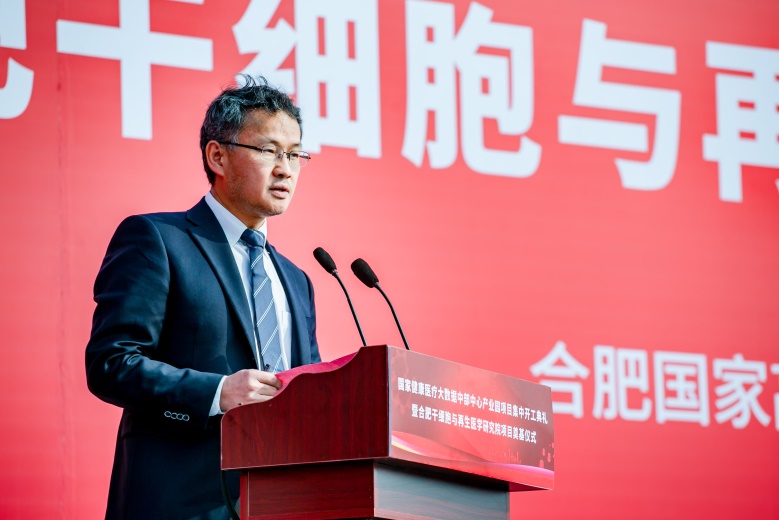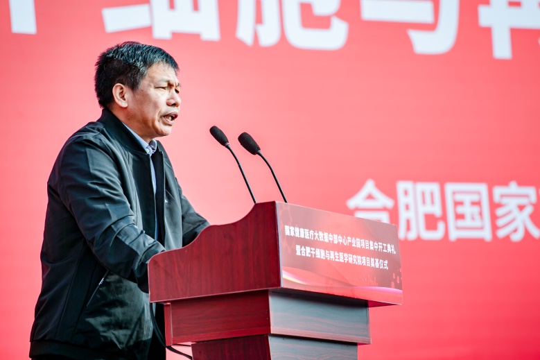 10月23日上午,國家健康醫(yī)療大數(shù)據(jù)中部中心產(chǎn)業(yè)園項(xiàng)目集中開工典禮暨合肥干細(xì)胞與再生醫(yī)學(xué)研究院項(xiàng)目奠基儀式在合肥高新區(qū)舉辦。中科院廣州健康院院長陳新文,中科院廣州健康院學(xué)術(shù)院長裴端卿,合肥市副市長王文松,合肥高新區(qū)工委書記、管委會(huì)主任宋道軍出席儀式并講話,安徽省經(jīng)信廳黨組成員、副廳長王燈明出席儀式并宣布項(xiàng)目開工。合肥高新區(qū)工委委員、管委會(huì)副主任劉登銀主持儀式。省、市相關(guān)部門負(fù)責(zé)人出席儀式。