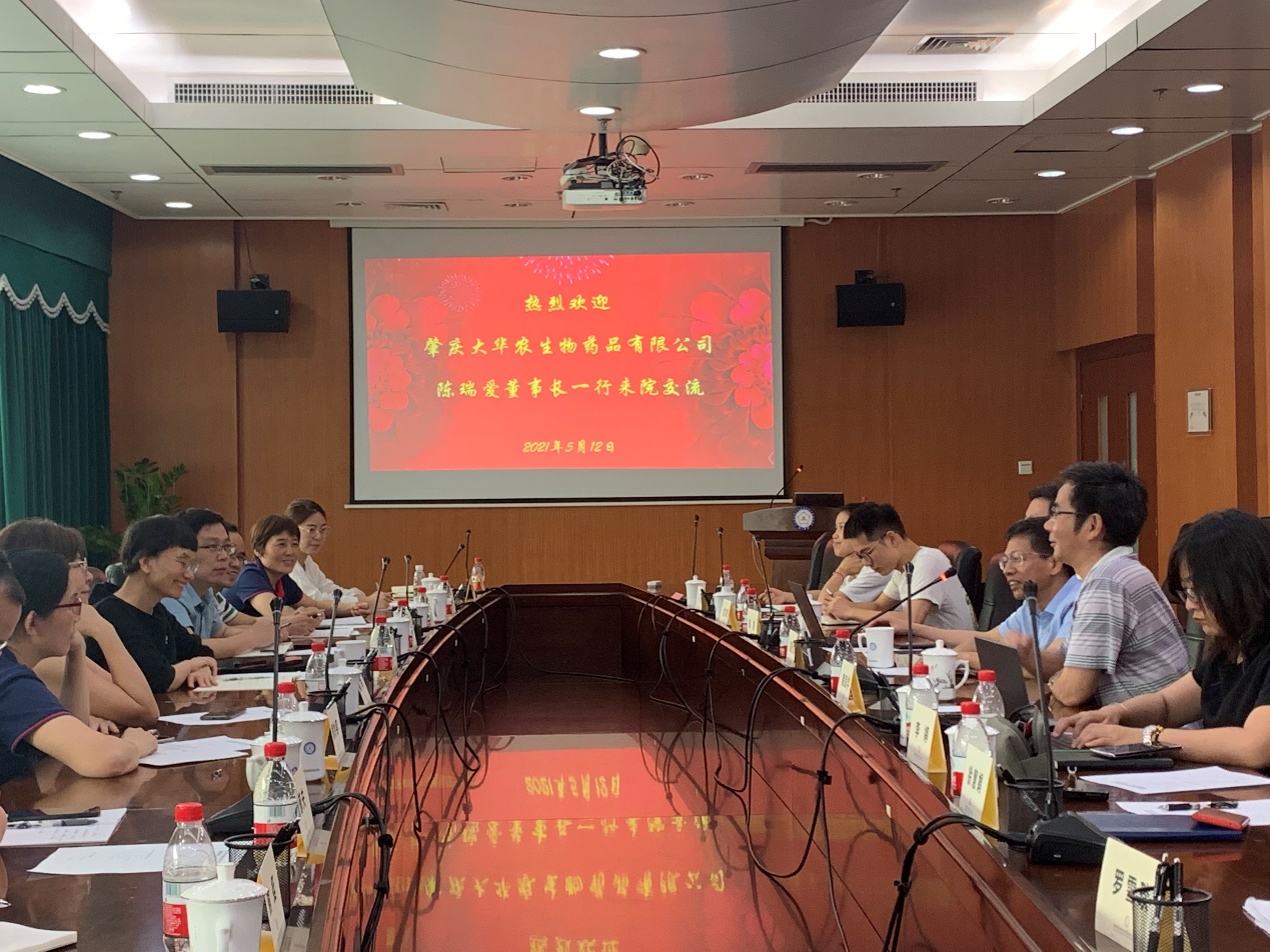 5月12日,肇慶大華農生物藥品有限公司陳瑞愛董事長一行到中國科學院廣州生物醫(yī)藥與健康研究院(簡稱廣州健康院)進行交流訪問。廣州健康院院長陳新文接待了來賓一行。