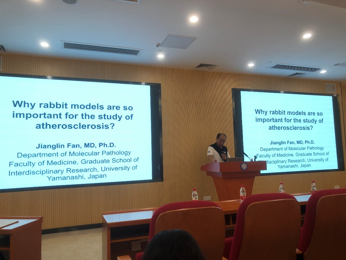 6月18日,日本山梨大學(xué)醫(yī)學(xué)部分子病理學(xué)教研室范江霖教授應(yīng)邀到中國(guó)科學(xué)院廣州生物醫(yī)藥與健康研究院進(jìn)行學(xué)術(shù)交流,并作了題為 “Why rabbit models are so important for the study of atherosclerosis?” 的學(xué)術(shù)報(bào)告。報(bào)告由廣州健康院賴(lài)良學(xué)研究員主持。