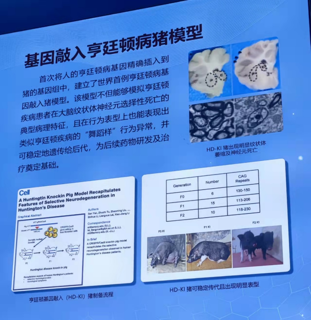 “十三五”期間,黨中央、國務(wù)院把基礎(chǔ)研究放在科技創(chuàng)新發(fā)展的突出位置,加大對(duì)基礎(chǔ)研究領(lǐng)域工作的投入和支持,推動(dòng)我國基礎(chǔ)研究領(lǐng)域取得了長足的發(fā)展。廣州健康院參展成果“細(xì)胞命運(yùn)決定中的表觀遺傳調(diào)控研究”就是在國家重大科學(xué)研究計(jì)劃(973)的支持下完成的,屬于科技部在“十二五”期間探索設(shè)立的青年科學(xué)家專題,這一項(xiàng)目在體細(xì)胞重編程的DNA去甲基化調(diào)控中做出了一系列原創(chuàng)性工作。廣州健康院與暨南大學(xué)李曉江教授研究團(tuán)隊(duì)合作完成的成果“基因敲入亨廷頓病豬模型”則成功培育出世界首例亨廷頓舞蹈病基因敲入豬,精準(zhǔn)地模擬出人類神經(jīng)退行性疾病,為開發(fā)治療亨廷頓舞蹈病新手段提供了穩(wěn)定、可靠的動(dòng)物模型。