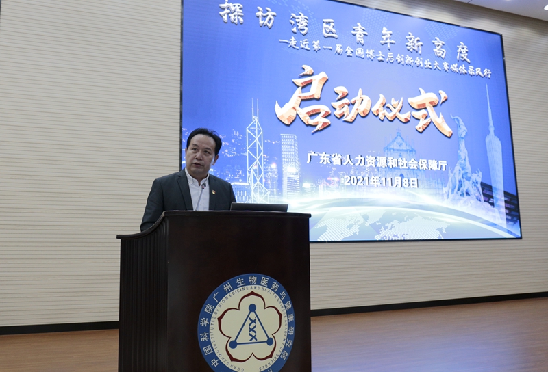 11月8日,由廣東省人社廳組織的“探訪灣區(qū)青年新高度”走進(jìn)第一屆博士后創(chuàng)新創(chuàng)業(yè)大賽媒體采風(fēng)行啟動(dòng)儀式在廣州健康院舉辦。人民日?qǐng)?bào)、新華社、總臺(tái)等二十幾家主流媒體等受邀走進(jìn)我院,深入了解博士后制度在引進(jìn)、培養(yǎng)青年人才和有效促進(jìn)廣東高質(zhì)量發(fā)展上的顯著成效。廣東省人社廳副廳長楊紅山、廣州市人社局一級(jí)調(diào)研員陳玉元以及省、市、區(qū)人社相關(guān)部門負(fù)責(zé)人等出席啟動(dòng)儀式。