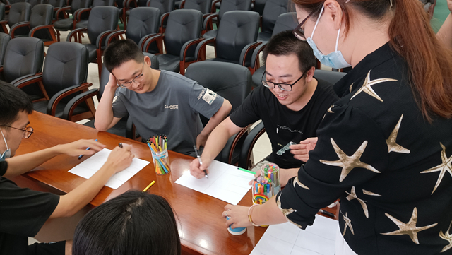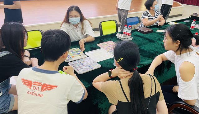 活動(dòng)中,廣州市心理咨詢師協(xié)會(huì)老師將參加活動(dòng)的學(xué)生進(jìn)行分組,使用曼陀羅動(dòng)力棋、OH卡等趣味心理體驗(yàn)工具與同學(xué)們進(jìn)行互動(dòng)心理游戲,引導(dǎo)同學(xué)們通過(guò)心理繪畫(huà)的形式檢測(cè)自身的心理狀態(tài)。通過(guò)以上活動(dòng),心理老師幫助同學(xué)們進(jìn)一步探索自我、提升心理能量,引導(dǎo)同學(xué)們?nèi)绾蚊鎸?duì)困惑和焦慮,找尋釋放壓力的方法和途徑。