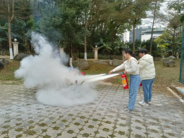 培訓(xùn)會上,廣州健康院研究生部負(fù)責(zé)人對《2024年春節(jié)假期留院學(xué)生安全規(guī)定》做了逐條宣講,重點強(qiáng)調(diào)了實驗安全及學(xué)生宿舍消防安全等注意事項,并就突發(fā)事故報備流程進(jìn)行了解讀。隨后,春節(jié)期間全體留院職工學(xué)生及值班人員開展了消防滅火演練。相關(guān)負(fù)責(zé)人首先對滅火器種類與使用方法進(jìn)行現(xiàn)場教學(xué)及演示,接著留院及值班人員逐一實操演練滅火處置,做到人人熟悉消防器材,從而切實提高每位留院人員應(yīng)對初期火災(zāi)的處置能力。