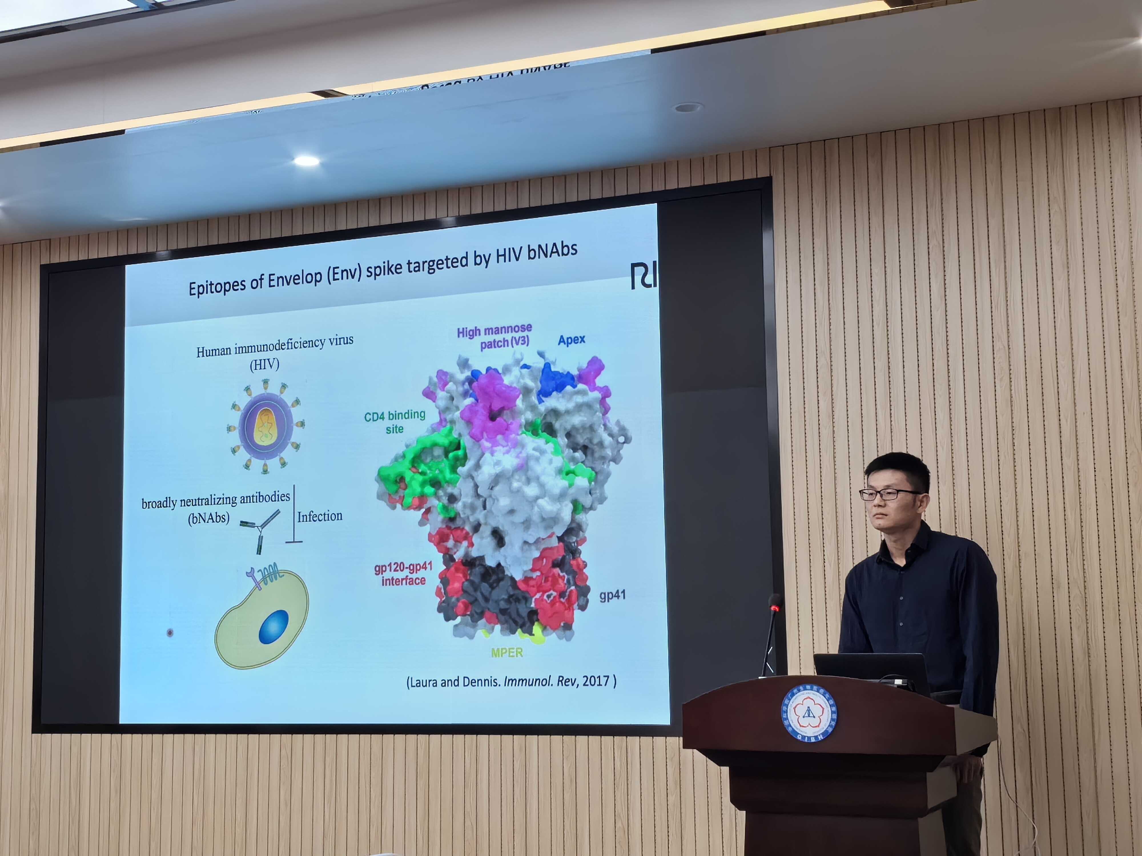 在報告中,謝振飛博士介紹通過使用人源化免疫球蛋白基因敲入小鼠模型,發(fā)現(xiàn)靶向(GT)誘導(dǎo)蛋白三聚體免疫原N332-GT5能活化V3-聚糖靶向bnAb BG18的種系前體細(xì)胞,并且由 N332-GT5激活的前體B 細(xì)胞可以通過兩種新型蛋白加強免疫原中的任何一種有效加強,這兩種新型蛋白免疫原旨在與脫靶 V1 結(jié)合反應(yīng)具有最小的交叉反應(yīng)性。以信使 RNA 脂質(zhì)納米顆粒 (mRNA-LNPs) 形式遞送初免和加強免疫原可產(chǎn)生持久的 GC、體細(xì)胞超突變和親和力成熟,可能是 HIV 疫苗開發(fā)的有效工具。這些研究成果開辟了開發(fā)有效HIV疫苗的新策略。