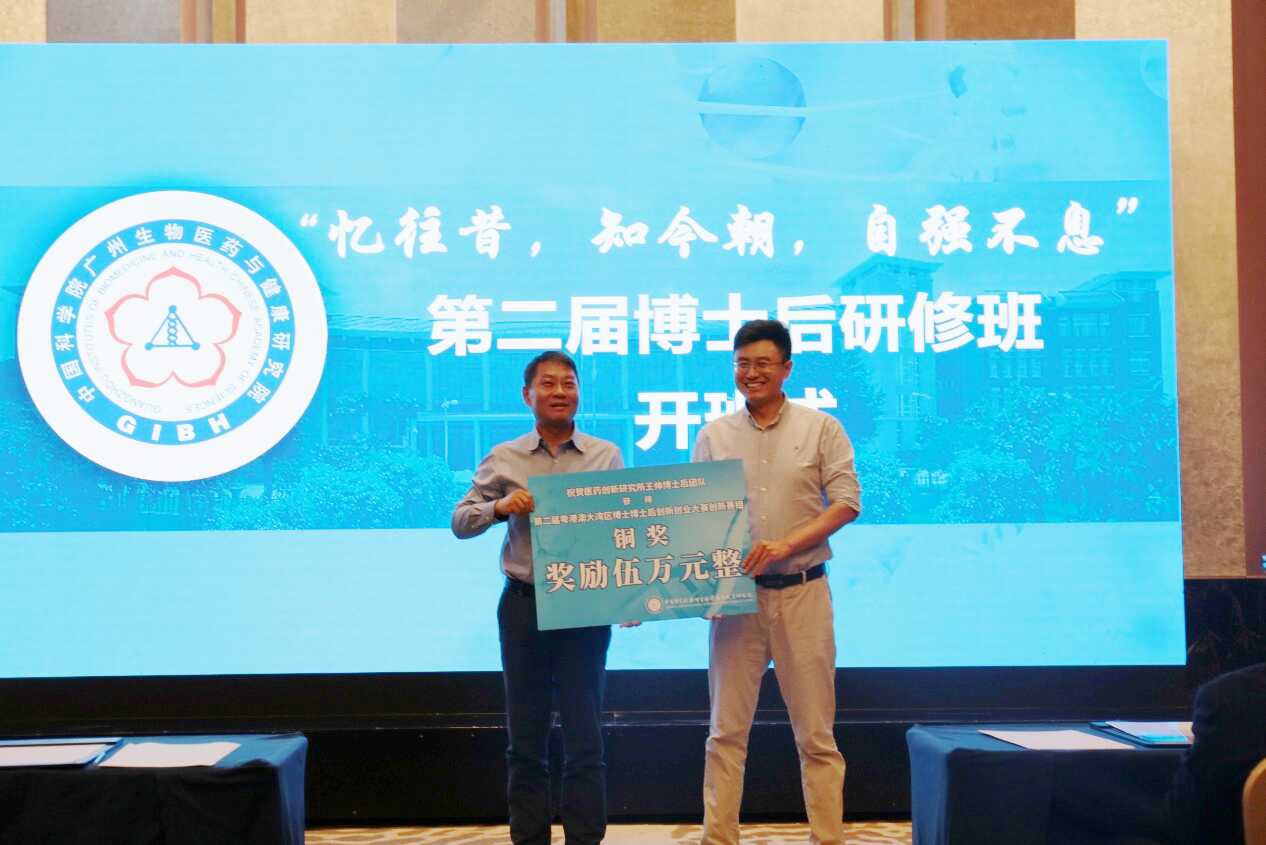 研修班上,胡志娟、王帥、Andrei Florian Stoica等博士后分別結(jié)合自身科研領(lǐng)域分享了科研成果、基金申請(qǐng)及參賽經(jīng)驗(yàn)等。廣州市干部和人才健康管理中心的專(zhuān)家為研修班博士后科研人員開(kāi)展團(tuán)輔活動(dòng)。張鴻翔為醫(yī)藥創(chuàng)新研究所王帥博士后團(tuán)隊(duì)獲得第二屆粵港澳大灣區(qū)博士博士后創(chuàng)新創(chuàng)業(yè)大賽銅獎(jiǎng)進(jìn)行了頒獎(jiǎng)。院領(lǐng)導(dǎo)、職能部門(mén)還與博士后進(jìn)行了座談交流。