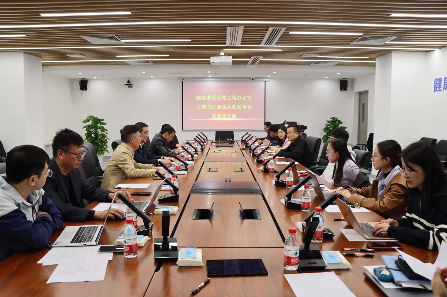 12月9日,廣州健康院召開(kāi)人類細(xì)胞譜系大科學(xué)研究設(shè)施(以下簡(jiǎn)稱 “細(xì)胞譜系設(shè)施”)工程辦公室關(guān)鍵崗位廉潔從業(yè)教育會(huì)議,廣州健康院黨委副書記、紀(jì)委書記徐海講授題為《遵規(guī)守紀(jì),廉潔從業(yè)》的廉政黨課。細(xì)胞譜系設(shè)施副總經(jīng)濟(jì)師徐紅飛、設(shè)施紀(jì)檢小組成員莫煒瑜、工程辦公室全體人員參加會(huì)議。