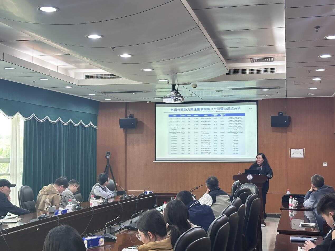 除此之外,張麗華研究員還講解了色譜分離技術在高通量單細胞及空間蛋白質組分析中的應用。色譜分離技術的結合使得蛋白質組學研究能夠在更精細的層面開展,特別是在單細胞層面和空間分布層面的研究中,有力地推動了蛋白質組學研究的發(fā)展,并且為相關疾病的早期診斷和個性化治療提供了重要的技術支持。