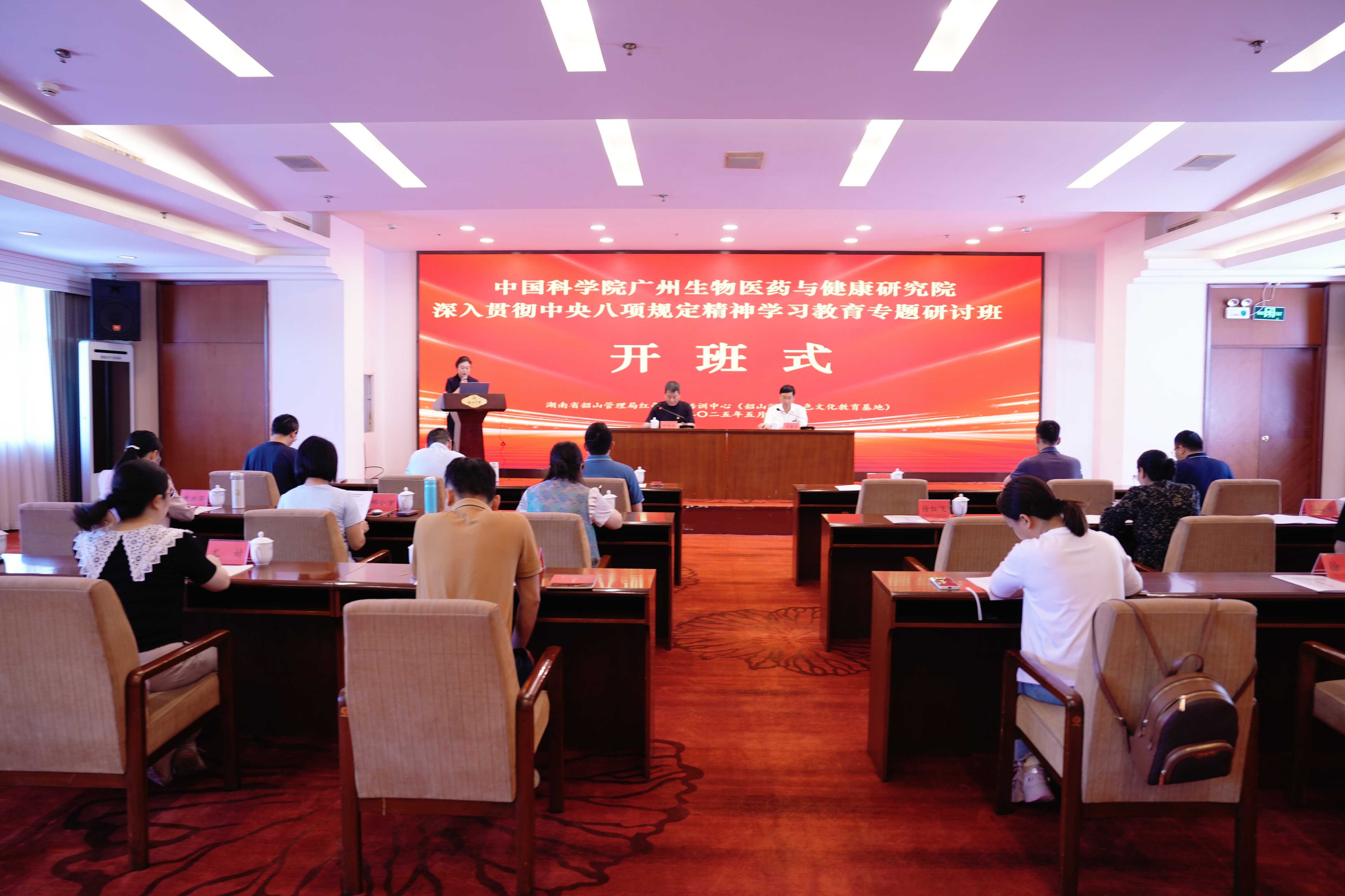 為推動深入貫徹中央八項規(guī)定精神學習教育走深走實,提升黨員干部的政治素養(yǎng)和紀律意識,5月9日至11日,中國科學院廣州生物醫(yī)藥與健康研究院(簡稱“廣州健康院”)在韶山舉辦了“深入貫徹中央八項規(guī)定精神學習教育”專題研討班。黨委書記張鴻翔帶隊,黨委委員、紀委委員、支部書記、中層干部等18人參加培訓。