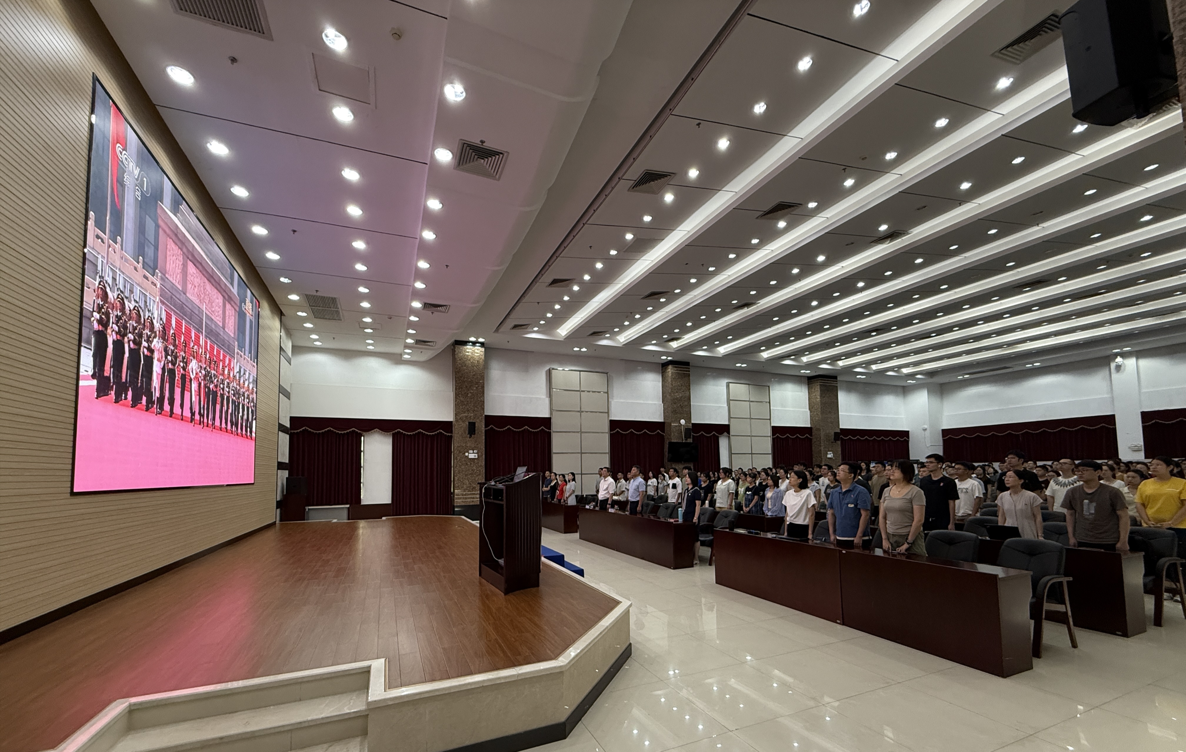 2025年9月3日,中國人民抗日戰(zhàn)爭暨世界反法西斯戰(zhàn)爭勝利80周年紀念大會在北京隆重舉行。廣州健康院組織全體在院學生及部分教職工代表集中觀看直播,黨委書記、副院長張鴻翔,黨委副書記、紀委書記徐海與五百余名師生一同參加活動。