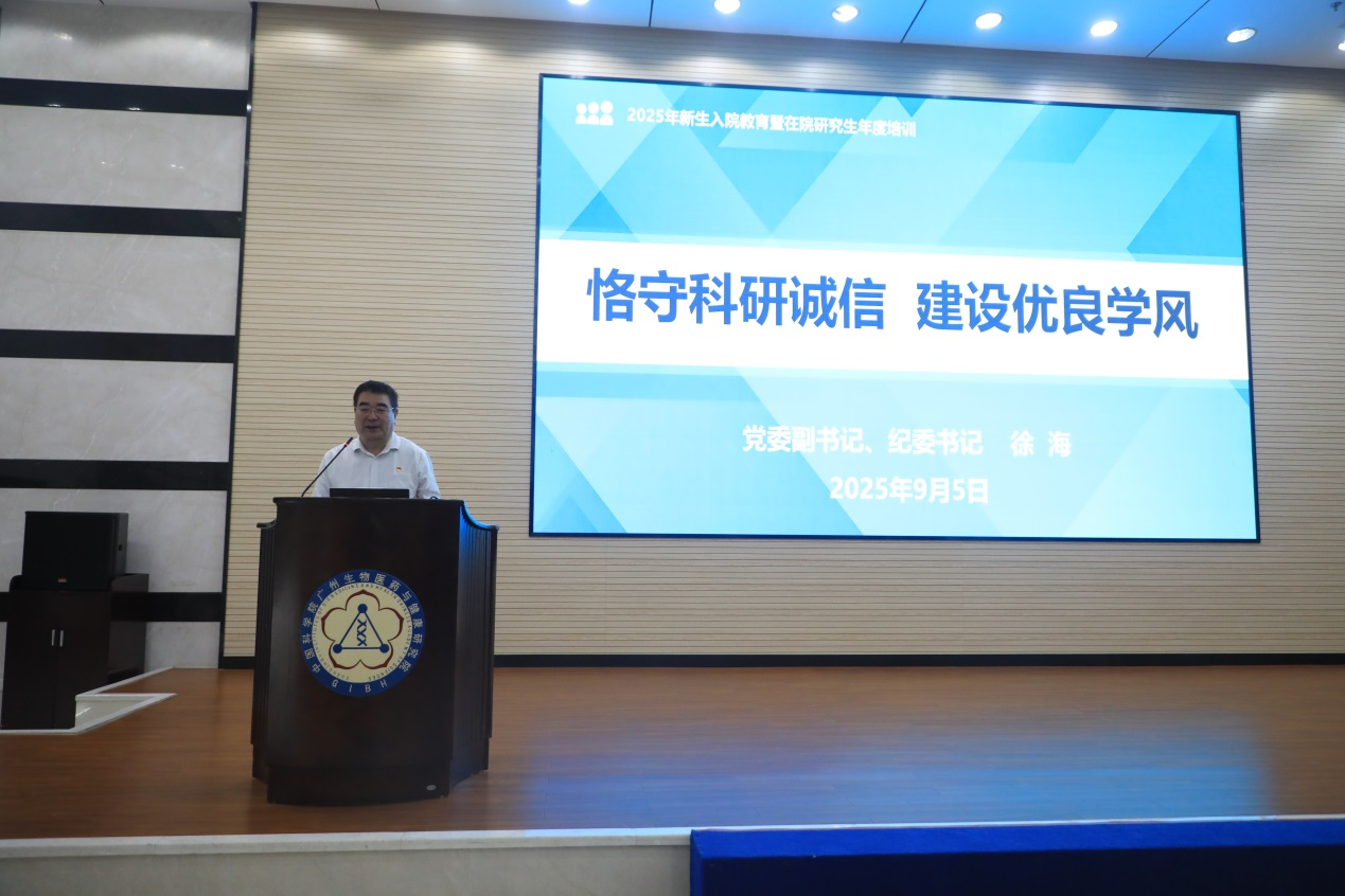 金秋九月,萬象更新。為落實立德樹人的根本任務(wù),引導(dǎo)學(xué)生堅定理想信念、樹立遠大目標(biāo),9月5日,中國科學(xué)院廣州生物醫(yī)藥與健康研究院(以下簡稱“廣州健康院”)組織開展“書記講黨課”暨2025年學(xué)生“入院第一課”專題培訓(xùn)。新入院研究生及在院學(xué)生黨員共同參加學(xué)習(xí)。