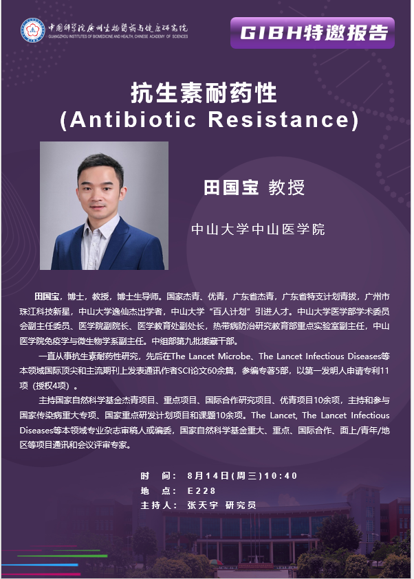 2024年8月14日特邀報告:抗生素耐藥性 (Antibiotic Resistance)