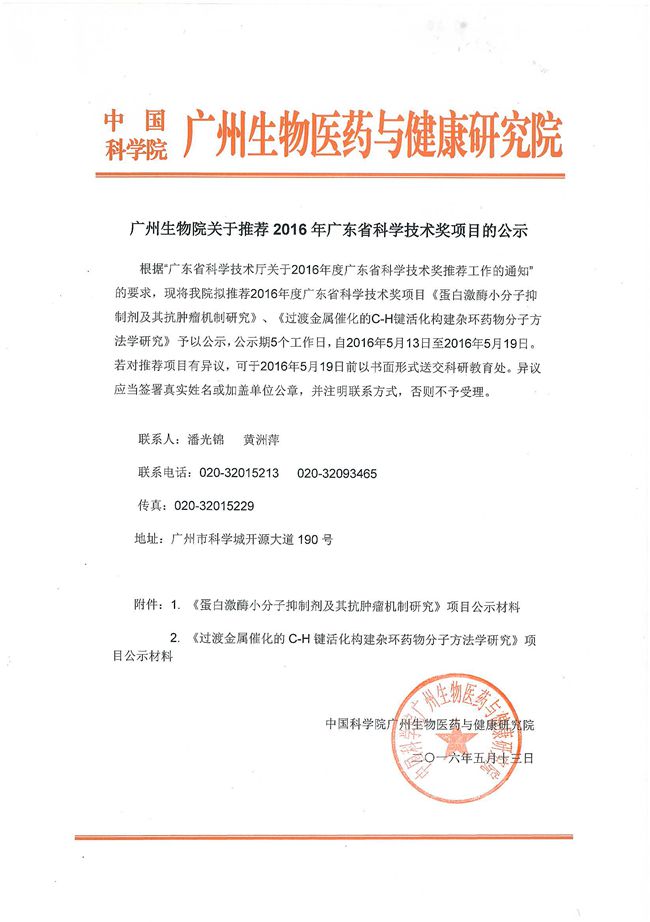 附件:1.《蛋白激酶小分子抑制劑及其抗腫瘤機制研究》項目公示材料