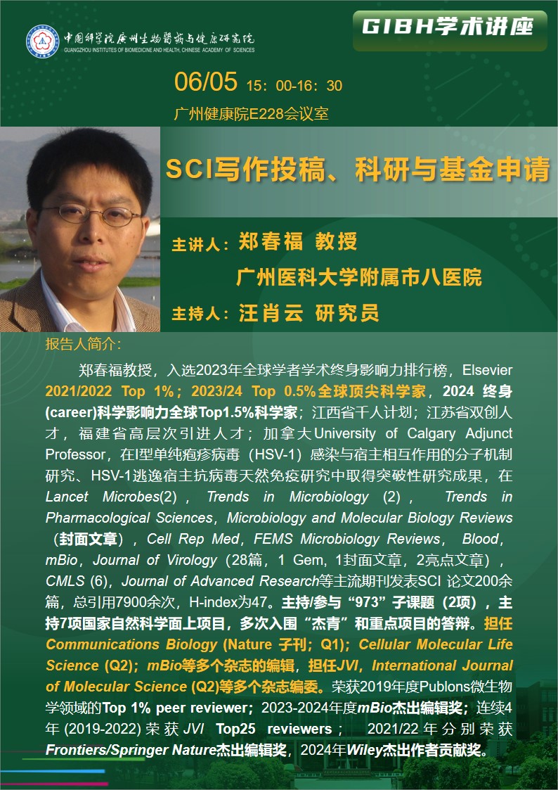 2025年6月5日學術講座:SCI寫作投稿、科研與基金申請