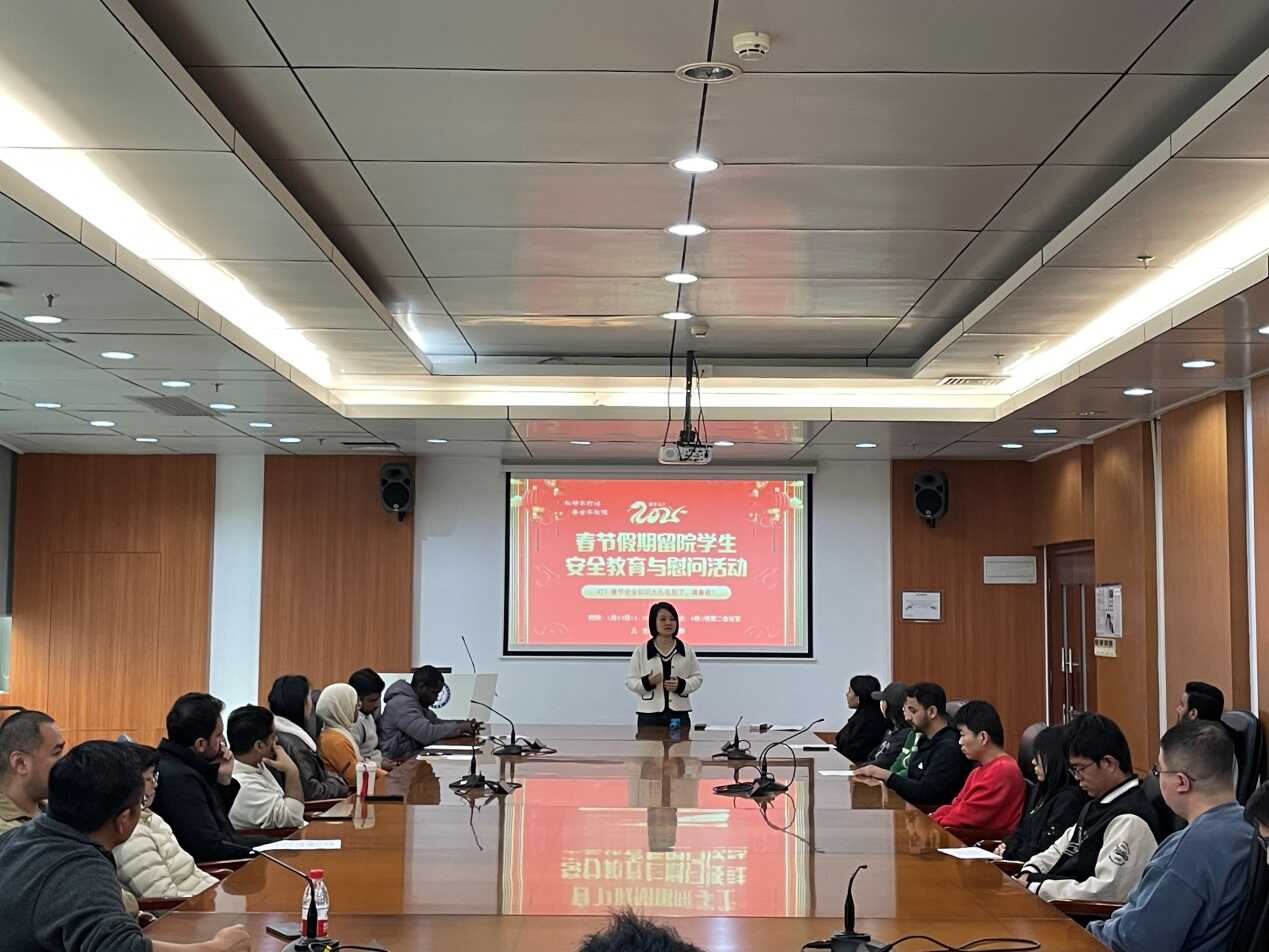 活動伊始,院領導向同學們致以誠摯的新春祝福,對假期堅守科研崗位的同學們表達親切的慰問。他強調,同學們在開展科研工作時一定要把安全放在首位,做好安全防護,同時要保持規(guī)律作息和適當?shù)腻憻?,希望大家度過一個平安、祥和、愉快的假期。研究生部主任鄭小潔向同學們進行了包括人身與財產(chǎn)安全、實驗安全、交通安全、消防安全、網(wǎng)絡安全、食品安全、防詐騙等方面的安全教育和遵紀守法教育,重點強調冬季用火用電安全。隨后,研究生部組織假期留院學生集中學習有關安全規(guī)定,簽署安全承諾書,并為留院學生發(fā)放慰問品。