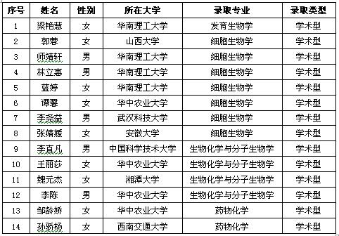 經(jīng)我院招生工作領(lǐng)導(dǎo)小組考核,2016年我院擬錄取推薦免試碩士(碩博連讀)研究生14名,其中,碩博連讀研究生(學(xué)術(shù)型)14名。現(xiàn)將名單公示如下