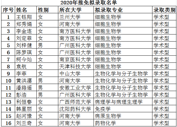 經(jīng)我院招生工作小組考核,2020年我院擬錄取推薦免試碩士(碩博連讀)研究生16名,其中碩博連讀研究生(學術(shù)型)16名?,F(xiàn)將名單公示如下: